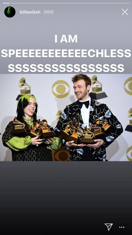 また、最優秀ポップ・ヴォーカル・アルバム賞も獲得し"計5部門の受賞"となりグラミーにビリー旋風を巻き起こしました!