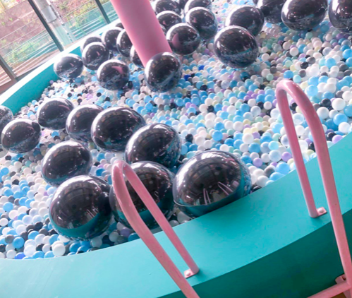 天井から吊るしていある球もおそらくタピオカをイメージしたのだと思いますが、なんか微妙ですよね。