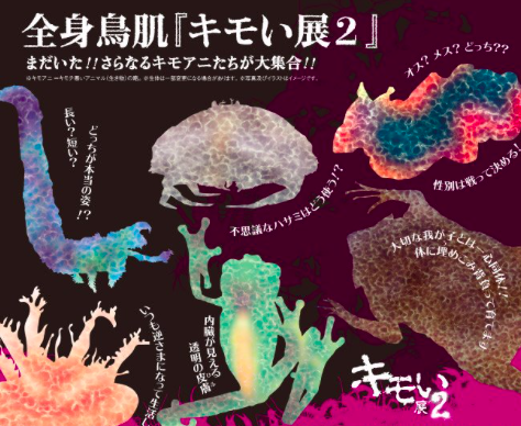 キモい展2とは、世界中から集めてきた、これまでみたことないような奇妙な姿をした生き物や、普段の生活の中では出会いたくないような姿をした生き物が展示されます。
