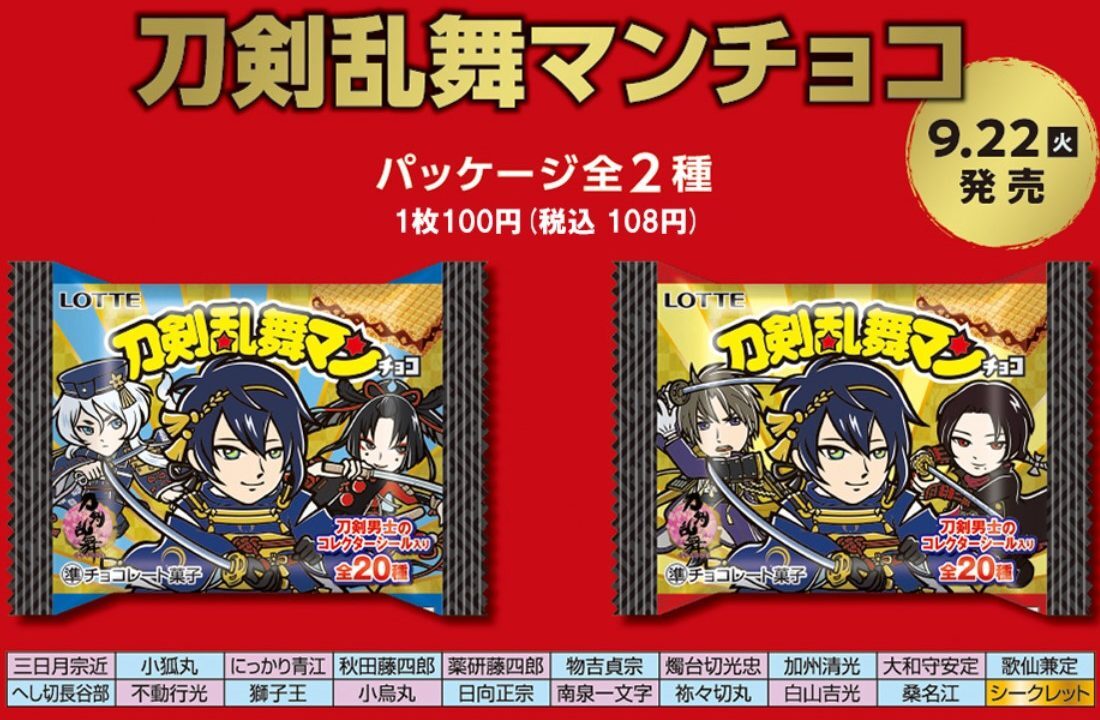 9/22(火・祝)からは『#刀剣乱舞マンチョコ』も発売決定❗