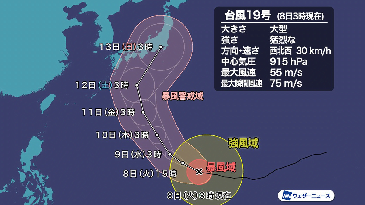 台風19号が発生し、日本に向かって北上するとの予想です。